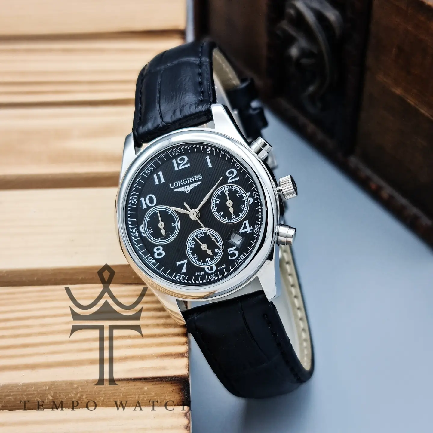 این مدل با موتور ژاپنی فول دیت عرضه شده که هر سه موتور آن فعال است. ساعت مچی زنانه لونژین از بند چرمی با کیفیت بهره میبرد.