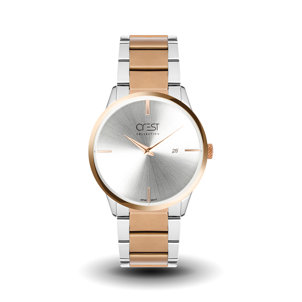 ساعت مچی مردانه CREST کرست مدل 6034/5 از برند مطرح کرست، یک مدل جذاب با رنگ بندی بسیار شیک و خاص است. ساعت مچی مردانه بند استیل با بند دو رنگ ظاهری مدرن به این ساعت مچی بخشیده است. رنگ بند و قاب صد در صد ثابت است و بعد از مدتهای طولانی استفاده هم تغییر نمیکند. کرست برندی با اصالت و کیفیت بسیار بالا به همراه پکیج و بسته بندی اورجینال است. رنگ بند استیل ترکیب دو رنگ رزگلد و نقره ای است.