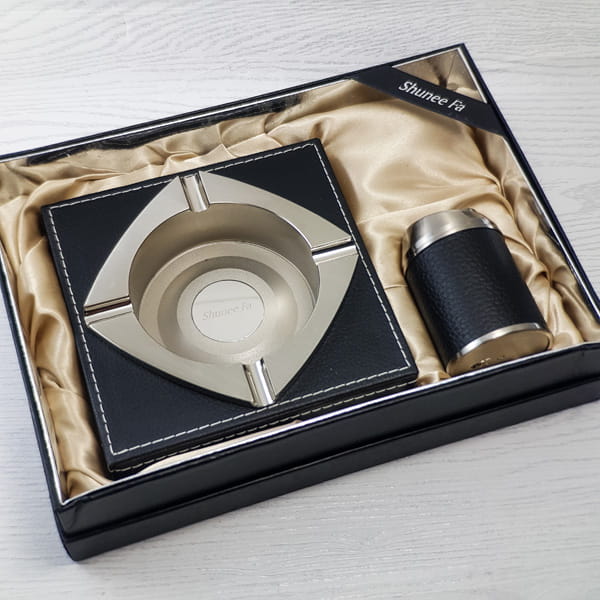 ست زیرسیگاری و فندک ✅زیر سیگاری با روکش چرم