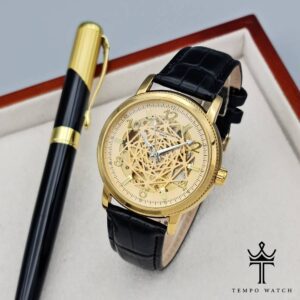 یک مدل اتوماتیک بدون نیاز به باتری با موتور فوق العاده با کیفیت. درب پشتی شیشه ای که جذابیت موتور اون رو به نمایش میگذارد از ویژگی های بارز این ساعت مچی مردانه است. صفحه ی ساعت نیز از نوع اسکلتون است.