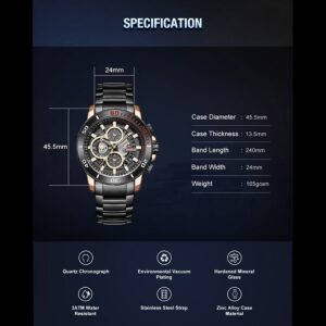 این مدل ساعت مچی مردانه جزو محبوب ترین مدلهای ساعت مچی Naviforce است. بند استیل مشکی بسیار با کیفیت است. بند استیل عمر طولانی دارد و در ترکیب با رزگلد جلوه خیلی خاصی دارد. این ساعت مردانه سه موتوره است. موتور ساعت مچی ژاپنی است که از ویژگیهای قابل توجه این مدل است. NF9174 ساعت مچی مردانه اورجینال نیویفورس است که دارای شناسنامه و پکیج اصلی است.